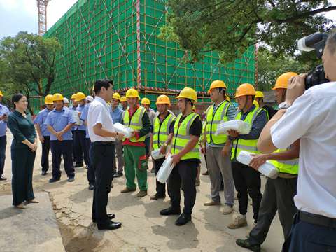 8月21日上午十一点,接近中午烈日炎炎,湘江集团党委书记、董事长张利刚一行来到南宁宜晨精品家居产品有限公司承建的长沙科技创意园项目,现场看望慰问高温天气下依然坚守战斗在岗位上的广大建设者,为大家送来了冰箱、电风扇、凉茶、藿香正气水、夏桑菊、西瓜等防暑降温用品。